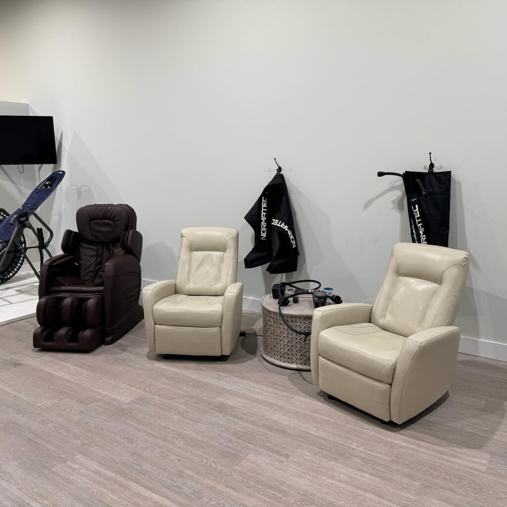 Boost circulation and reduce soreness with NormaTec Compression Therapy at Recalibrate Recovery Studio.
